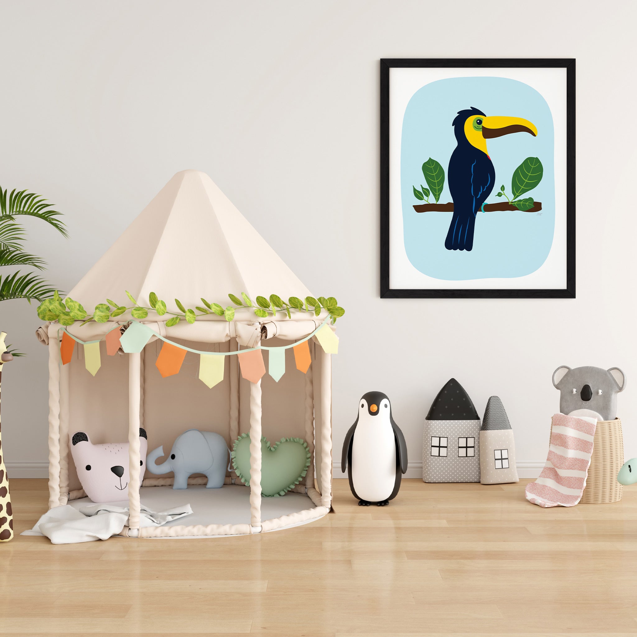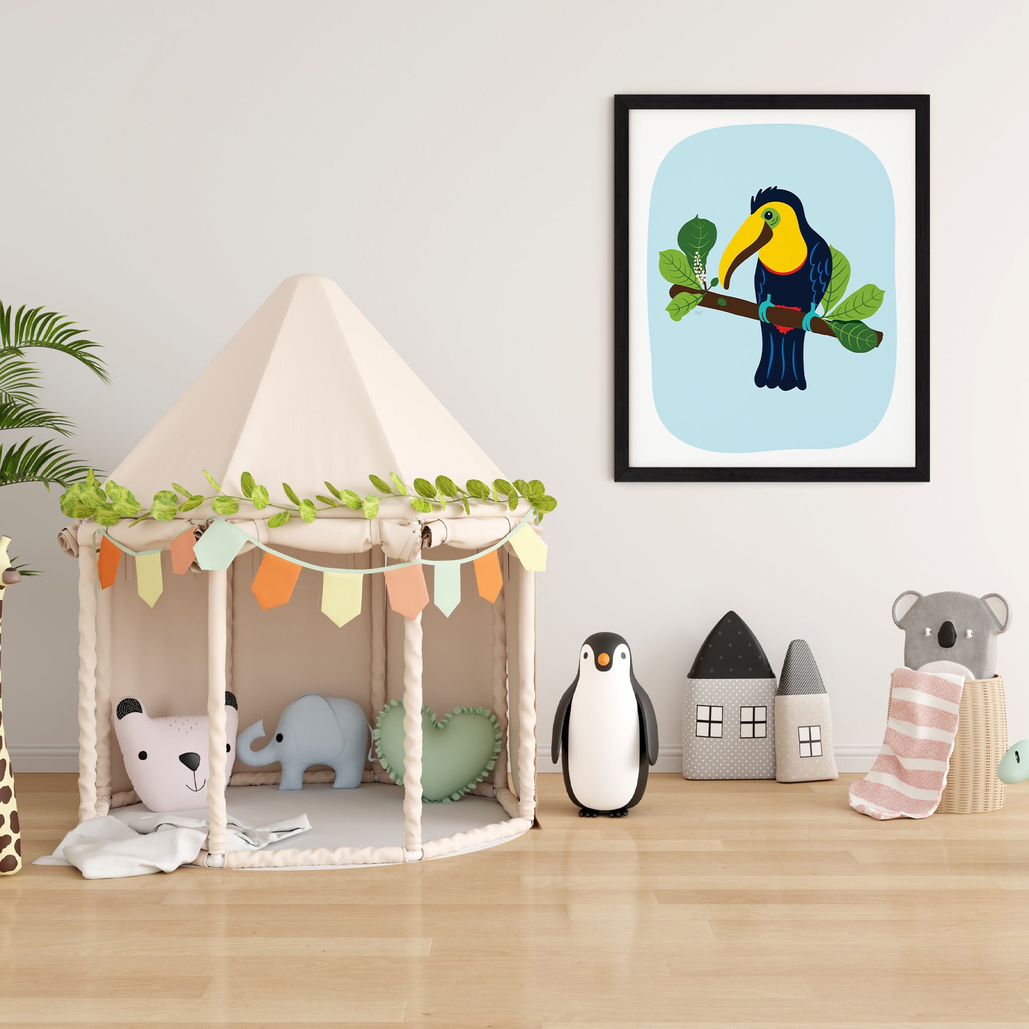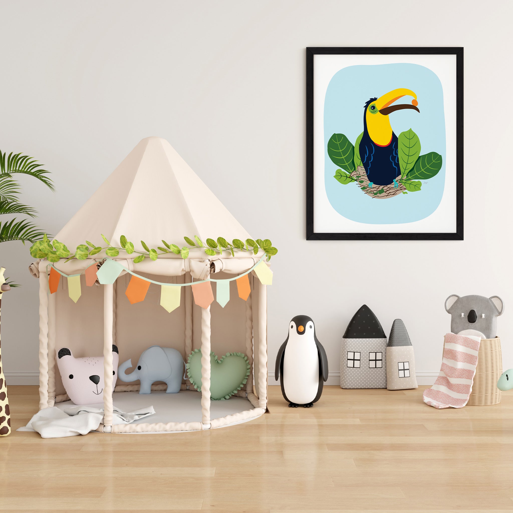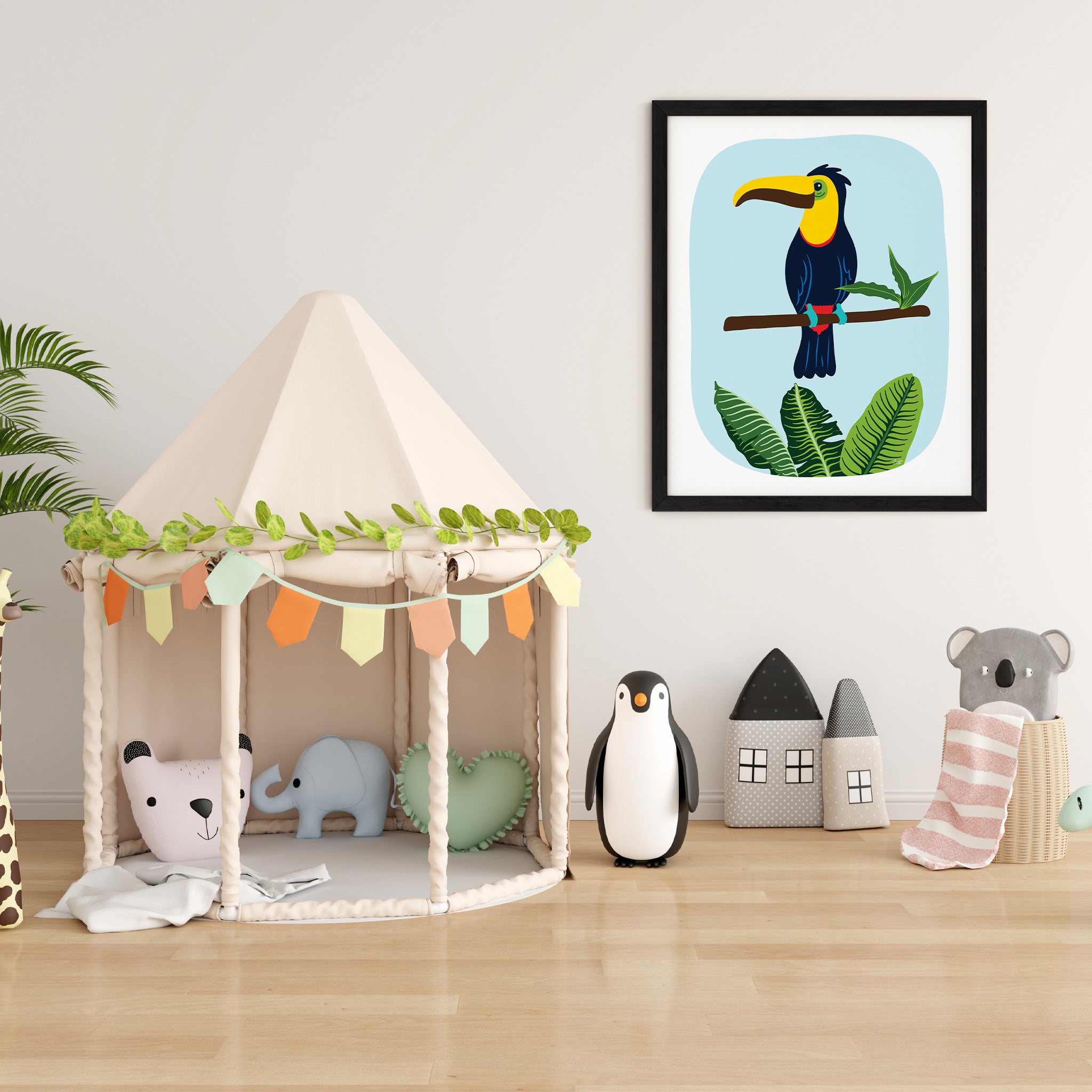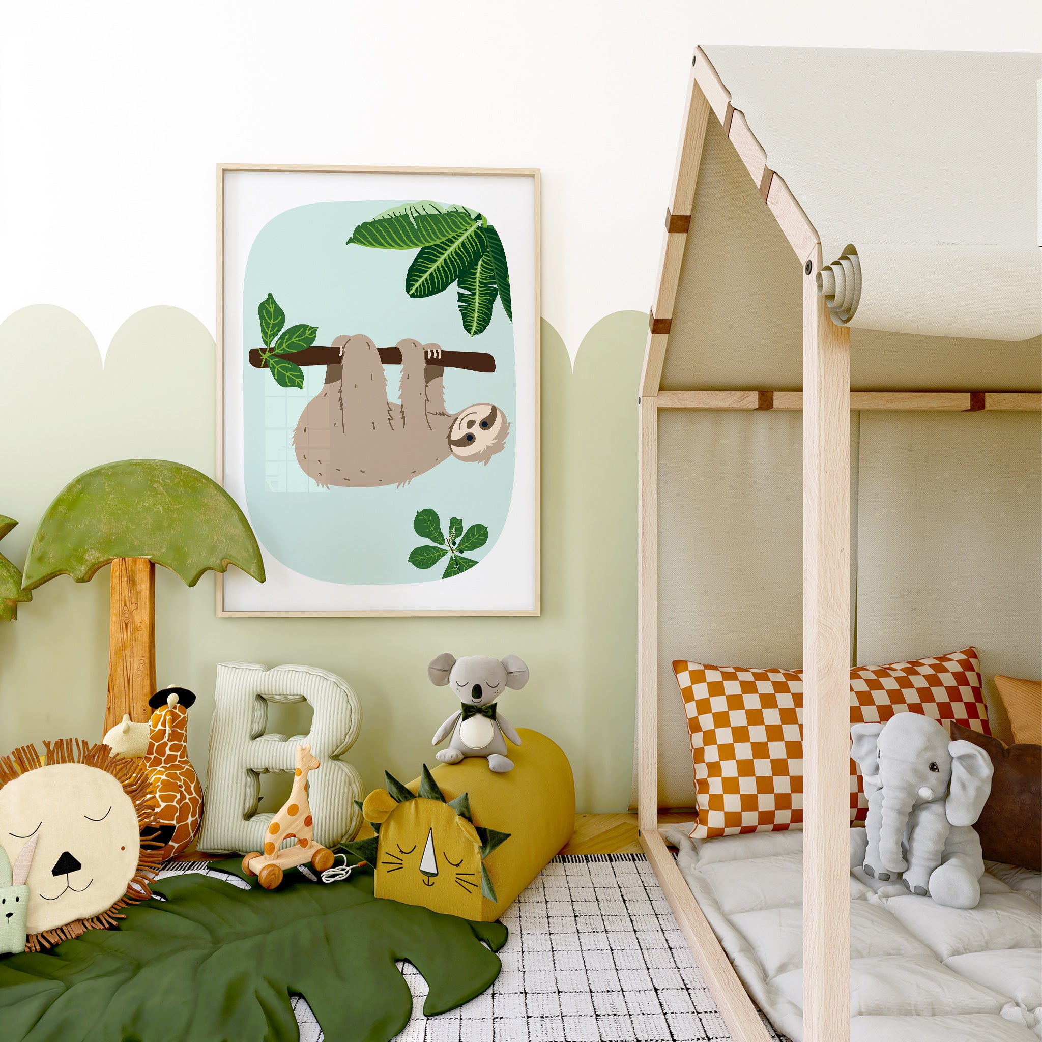 Immerse your little one's room in a whimsical jungle with this enchanting art prints collection. Nurture their imagination, spark curiosity with these adorable companions, and create a captivating world for your little one where creativity thrives.