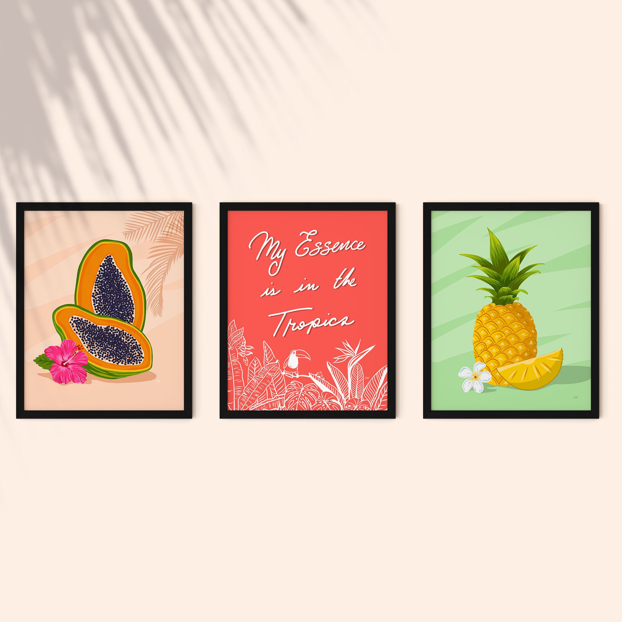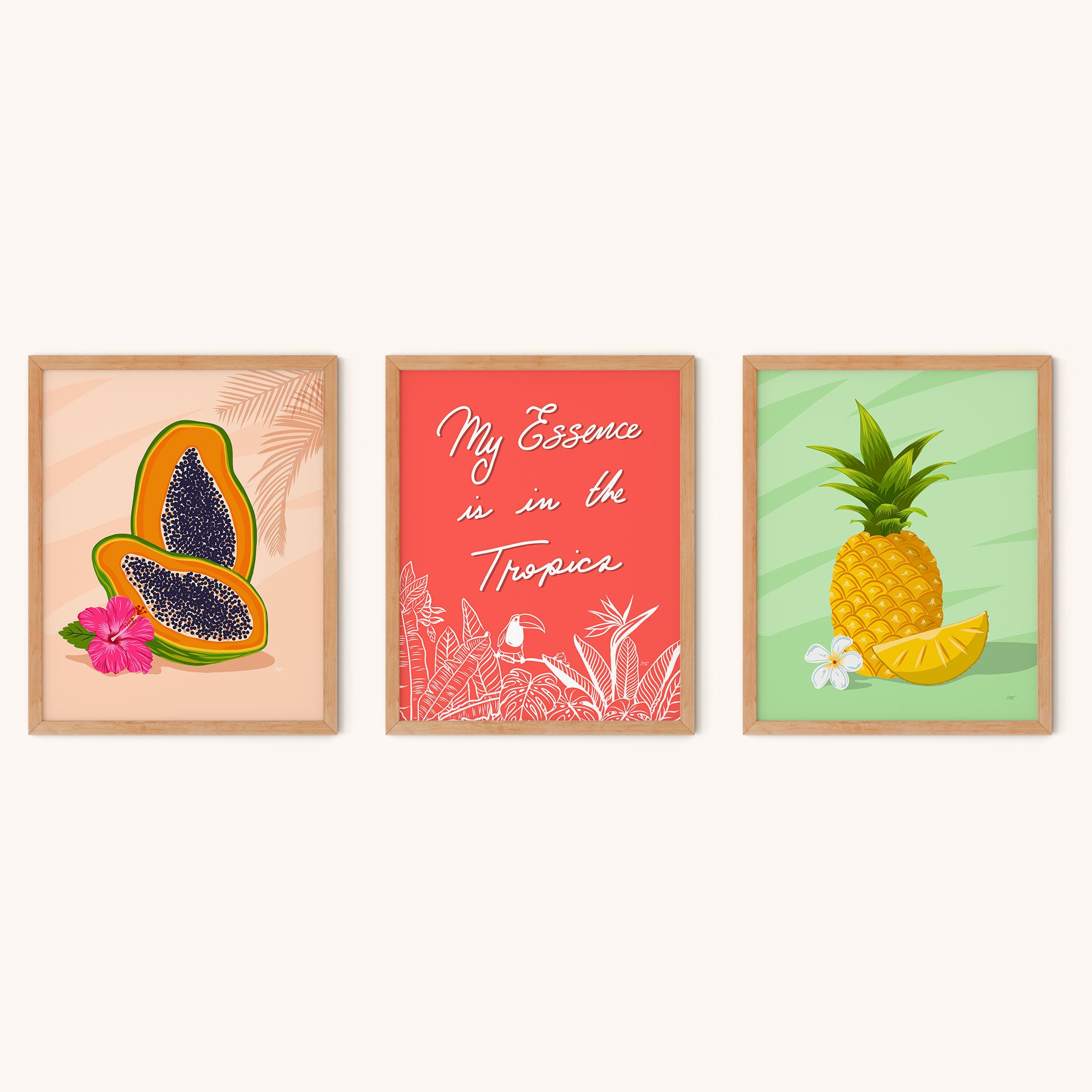 Each piece radiates a sense of joy and energy while also creating a calming and serene atmosphere that will make you feel happy and relaxed no matter where you are in your home. Add a splash of color and a touch of nature to your walls, and enjoy the beauty of the tropics every day.